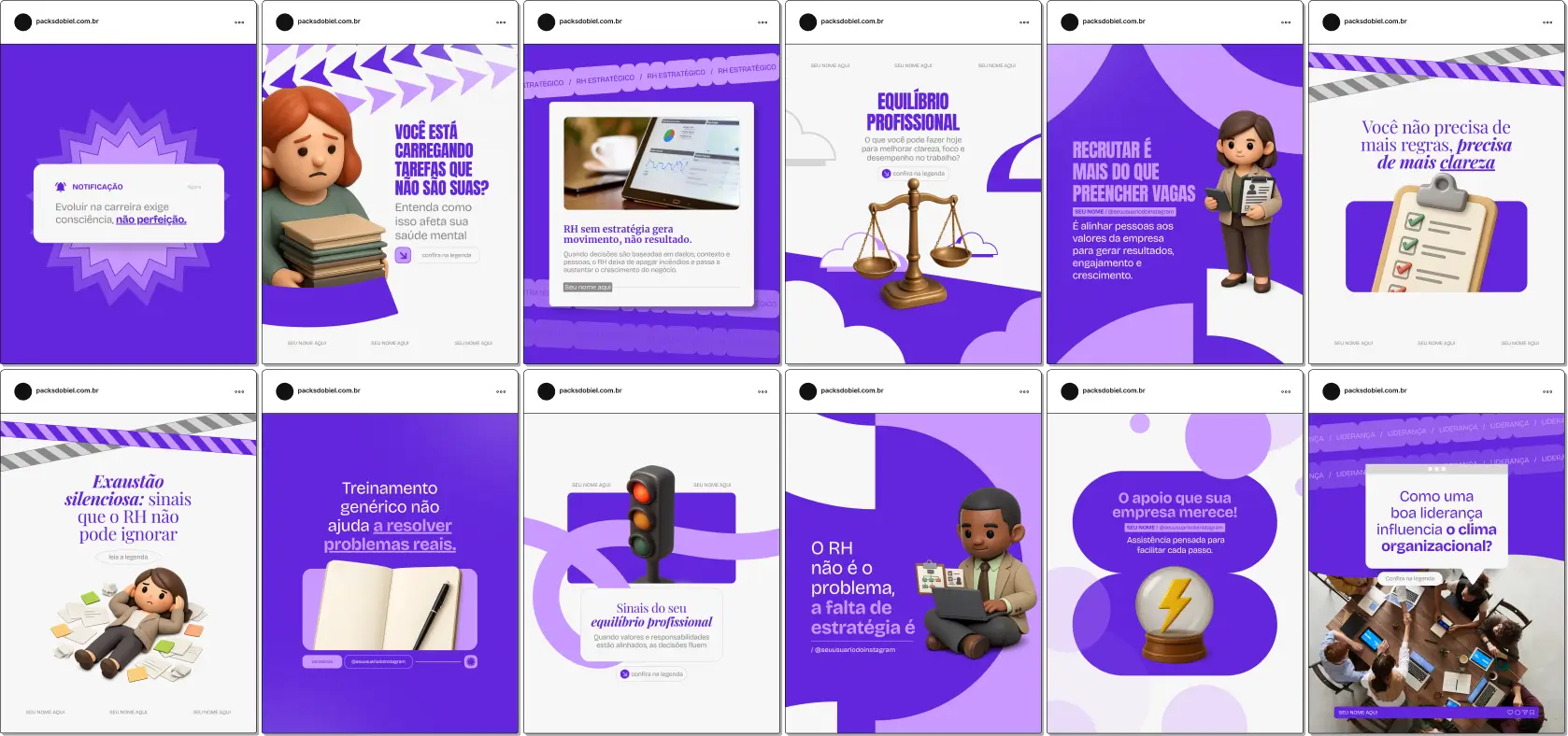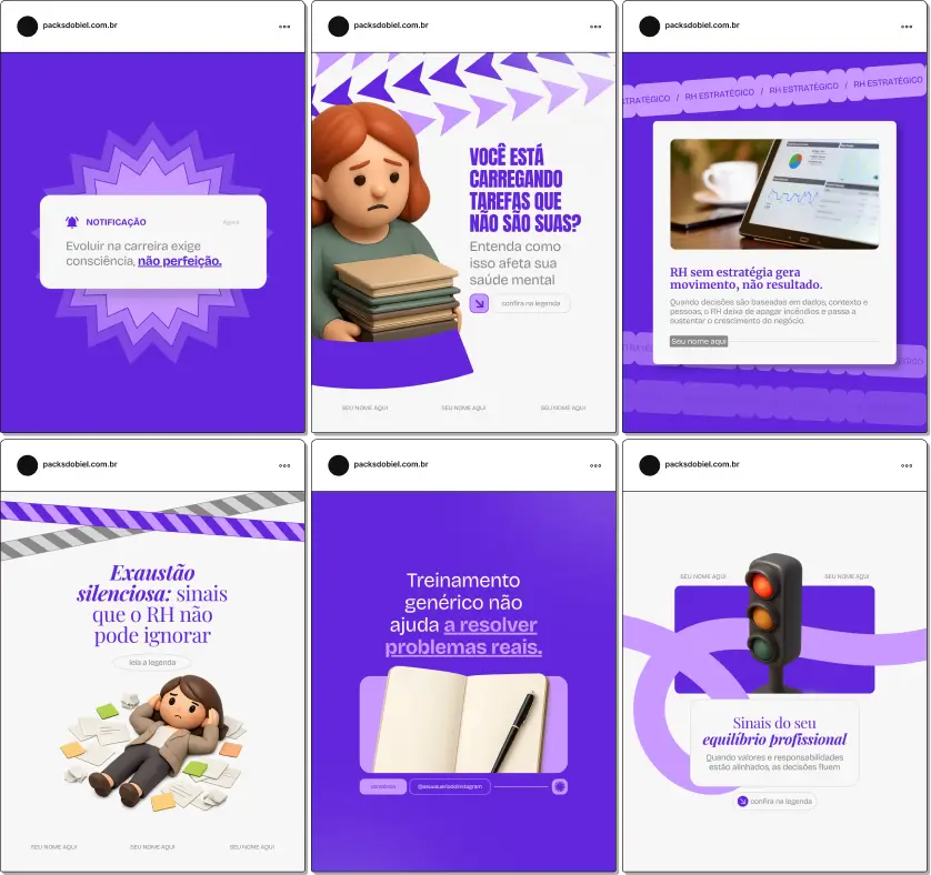 Quem compra um Pack geralmente busca posts e artes que se identifiquem e combinem com seu perfil. Cada produto, seja meu ou de outro criador, tem um visual próprio.
