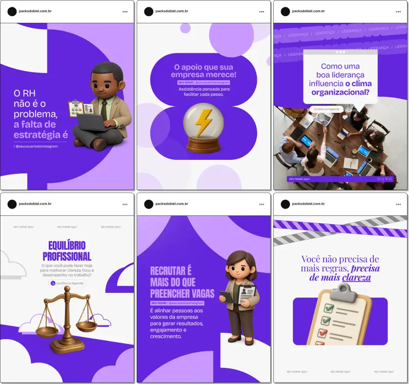 PACK CANVA RECURSOS HUMANOS | Posts para Instagram com legendas prontas e editáveis no Canva gratuito.
