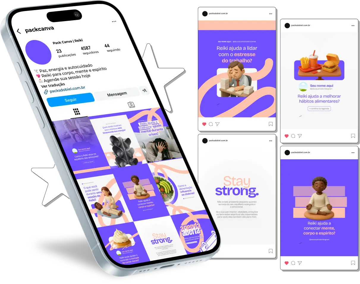Com o Pack Canva Reiki, você garante um perfil organizado, educativo e atrativo, que evidencia seu cuidado para quem visita sua página.